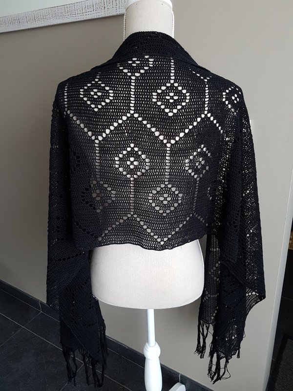 The nice thing about these geometric motifs is that you can use them for any project of your choice: a scarf, a poncho, a blanket, a carpet, ... Play with color and yarn and you will create a unique object every time.