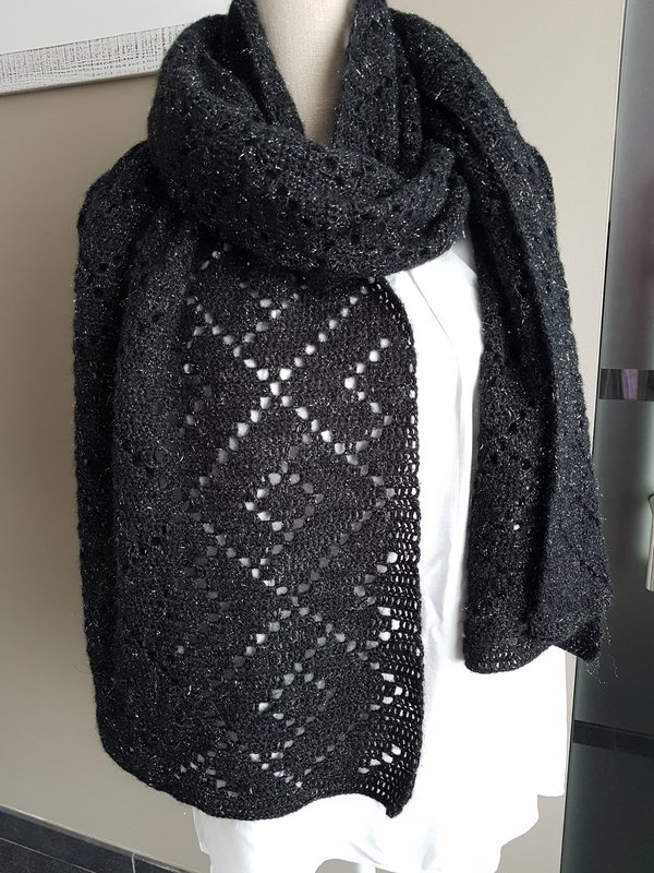 The nice thing about these geometrical motifs is that you can use them for any project of your choice: a scarf, a poncho, a blanket, a carpet, … Play with color and yarn and you will create a unique object every time.