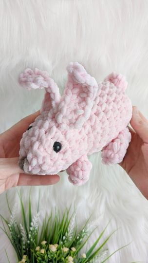 Size of the finished toy: About 7.87 inches (20 cm) long with super bulky yarn and 6 mm crochet hook.