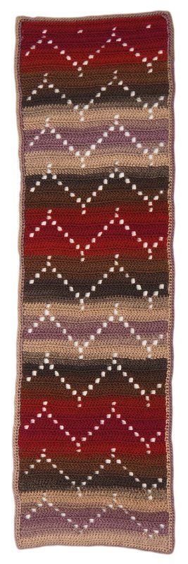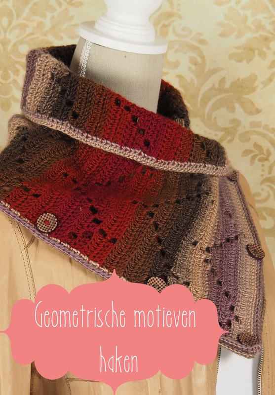 The nice thing about these geometrical motifs is that you can use them for any project of your choice: a scarf, a poncho, a blanket, a carpet, … Play with color and yarn and you will create a unique object every time.
