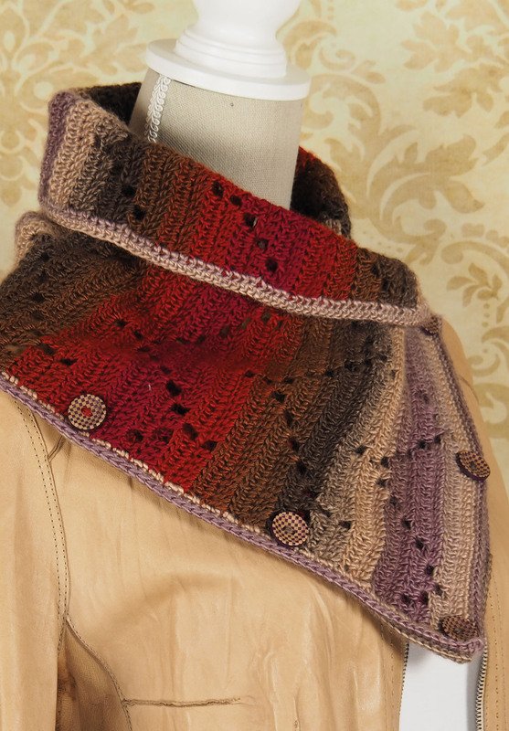 In this example I crocheted neckwarmer with this motif ‘Pisa’. Each motif is named after an Italian city or small town I enjoyed very much.