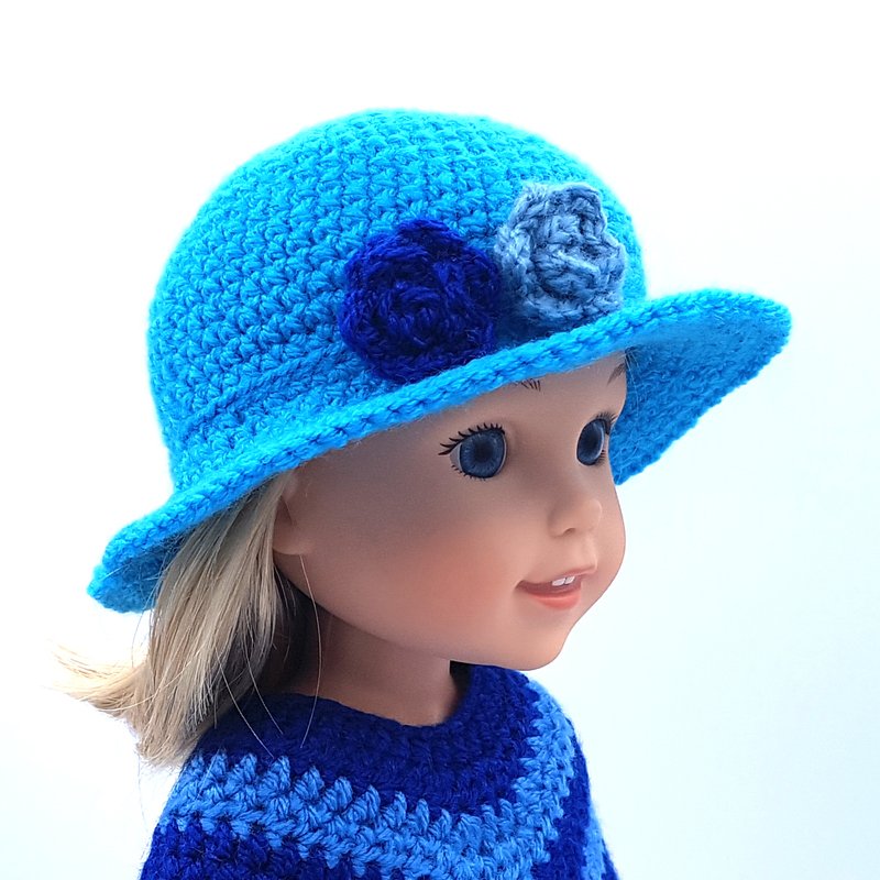 This pattern includes 15 pages of row by row instruction and pictures how to make crochet turban hats Paola Reina, Wellie Wisher and similar dolls.