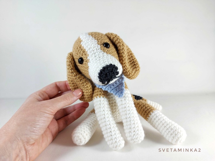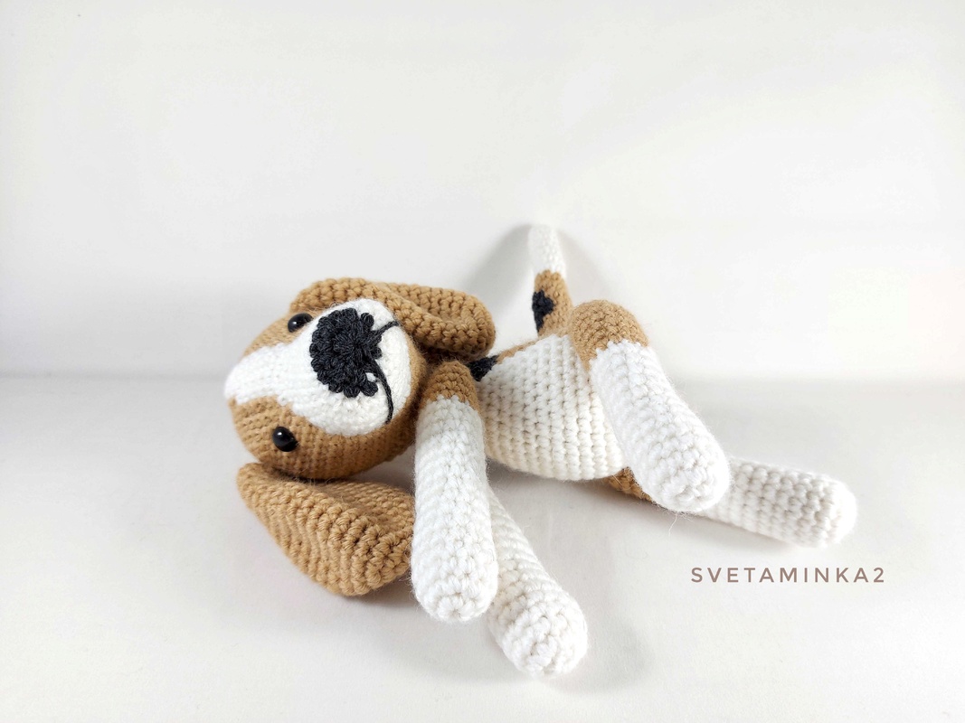 This cute amigurumi Beagle puppy wants you to play and cuddle him all the time!