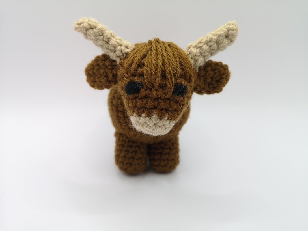 The small Scottish highland cattle is easy to crochet and depending on the yarn used, it has the ideal size as a key ring or bag charm. Just grab the leftovers of your favorite yarn and get started. Have fun crocheting :)