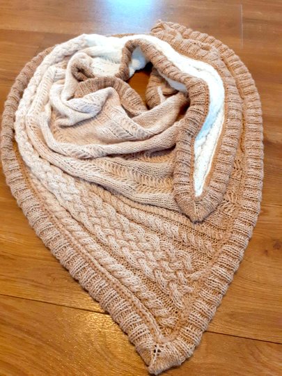 The work is done asymmetrically, with a border at the end. You also have many options to customize your scarf.