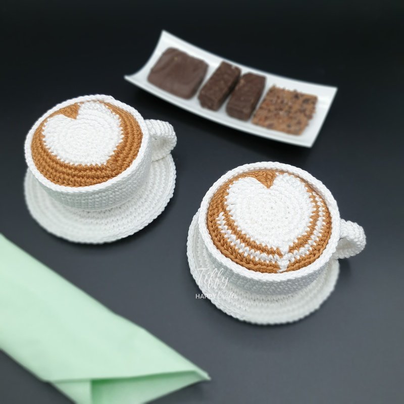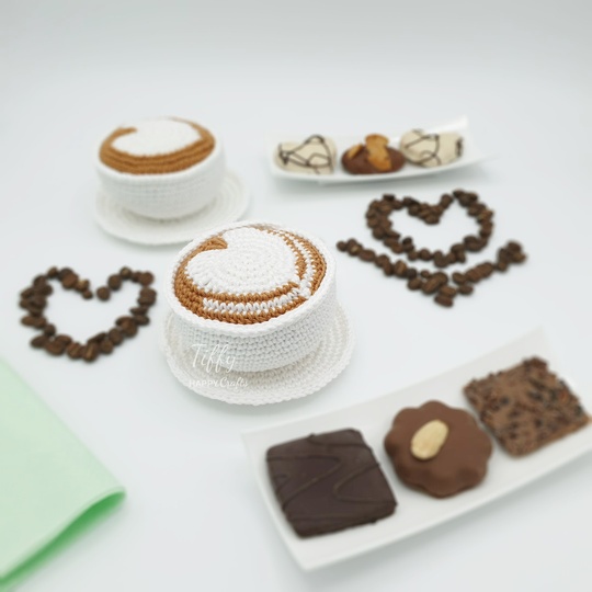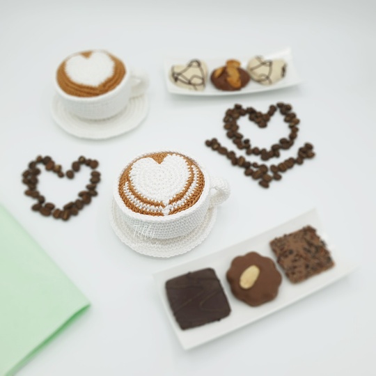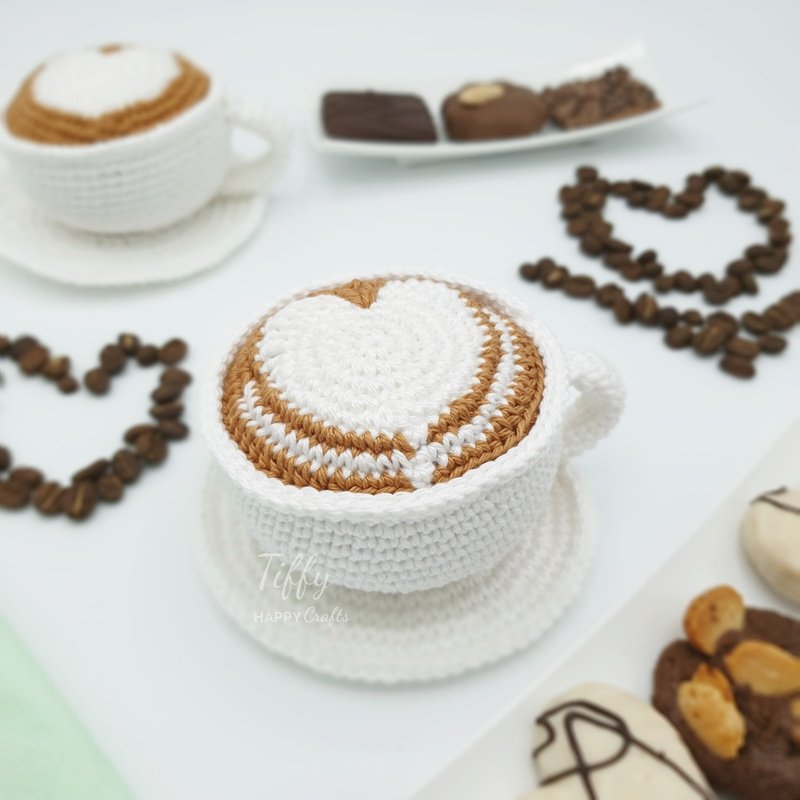 Here is an easy-to-follow Crochet Pattern for the Mug of Cappuccino with latte art - heart (2 Types)