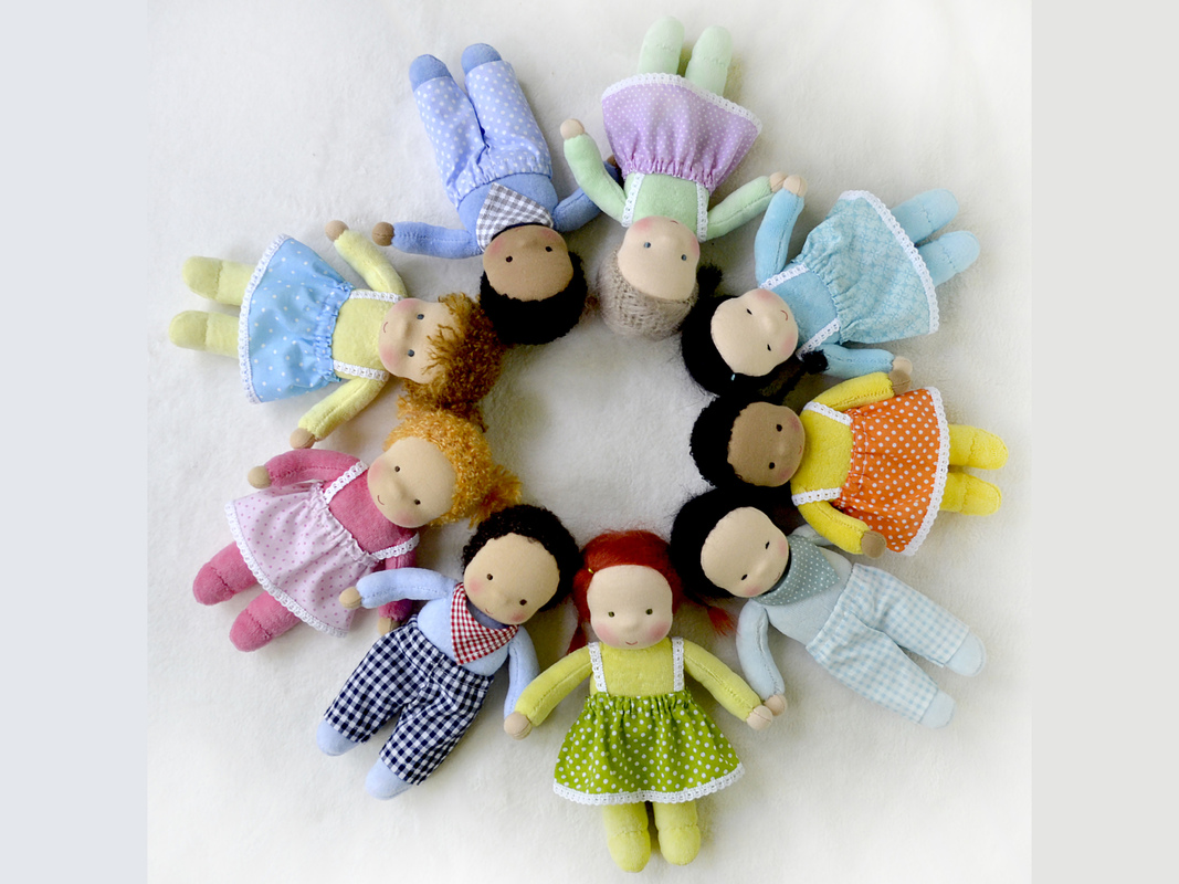 This is an English .PDF tutorial to learn how to make a small Waldorf pocket doll 7”(18 cm) tall