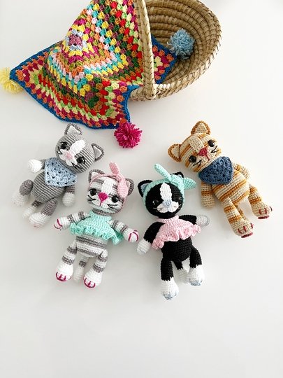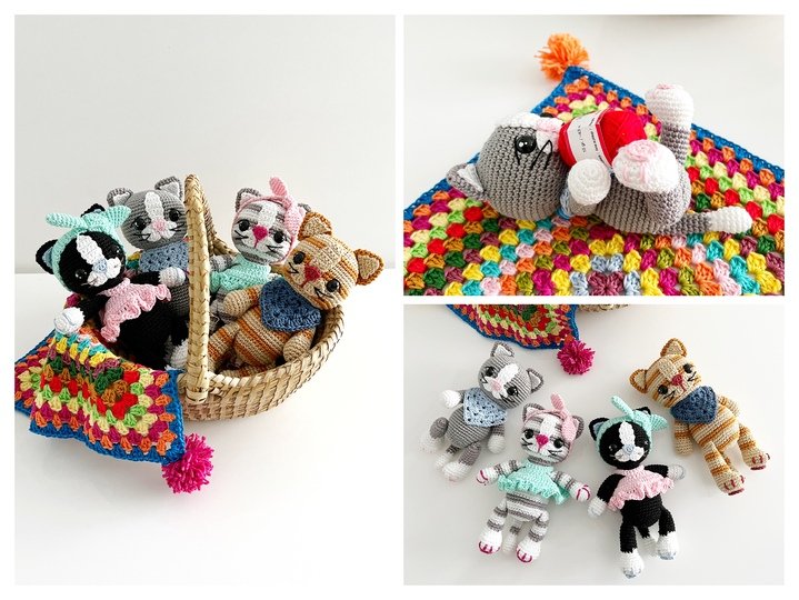 Crochet pattern for this cute gang of kittens (dissolution of our MysteryCal from 01/21/2023)