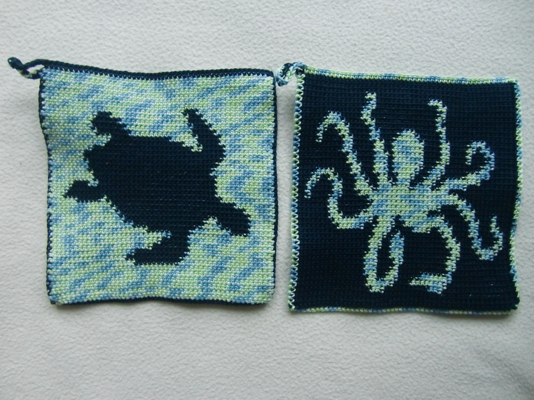 You love the sea and its animals? If you want to bring a little vacation home, you can do this wonderfully with the potholders crocheted in doubleface technique. With this technique it is possible to crochet completely different motifs on both sides. The tutorial contains a total of 4 nautical motifs (Dolphin, Aquatic turtle, Octopus, Hammerhead shark).
