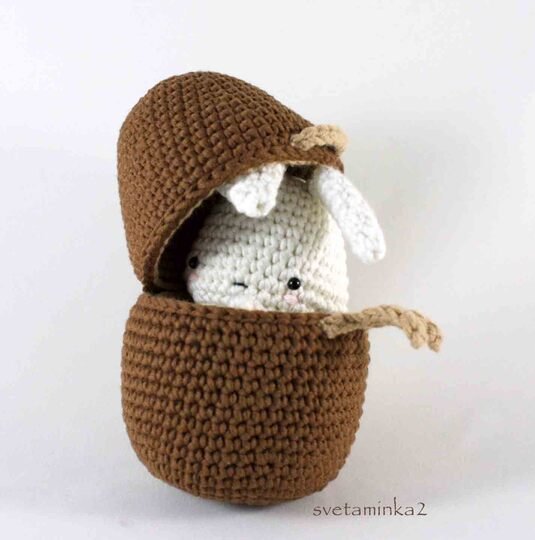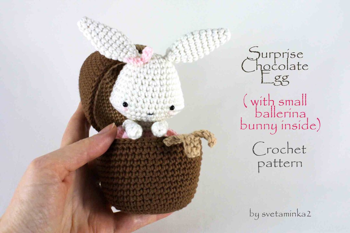 Easter Crochet Pattern to make Amigurumi Easter Egg Surprise with small Amigurumi Ballerina Bunny inside (downloadable pdf file) in English (US terms), very detailed, very clear instructions and tips with lots of photos for each step (the original pattern by svetaminka2).