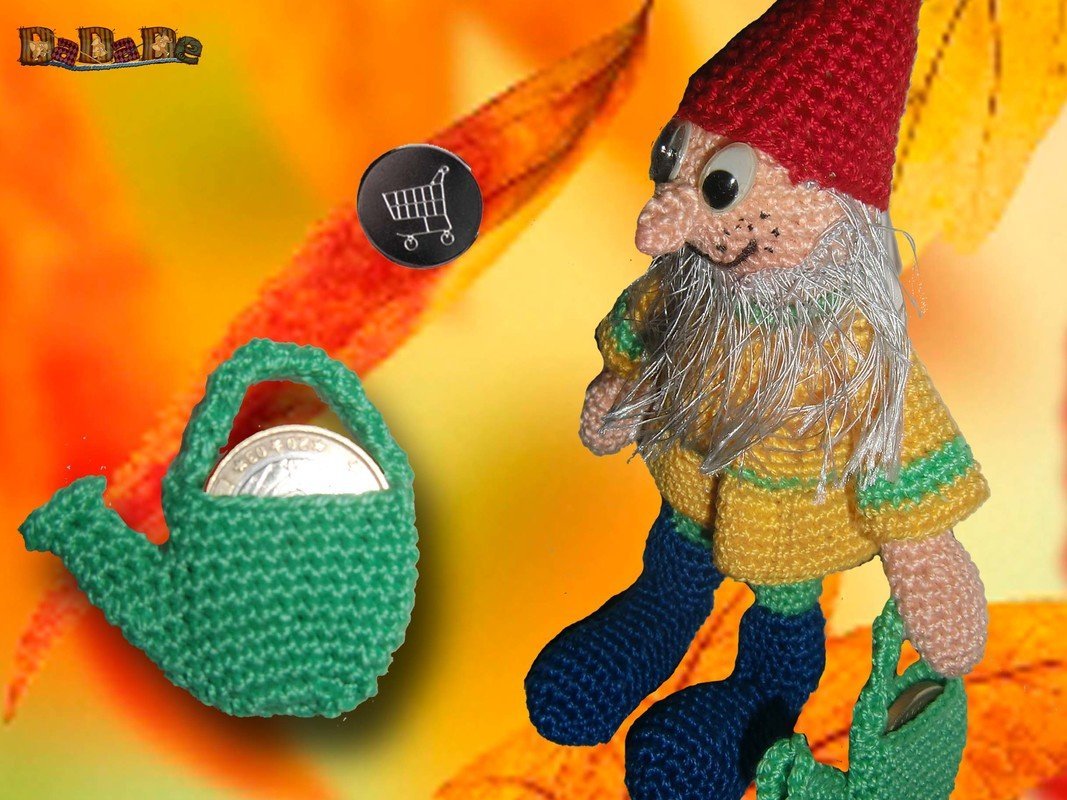 Der Zwerg hat in der Gießkanne ein Fach für den Einkaufs-Chip,