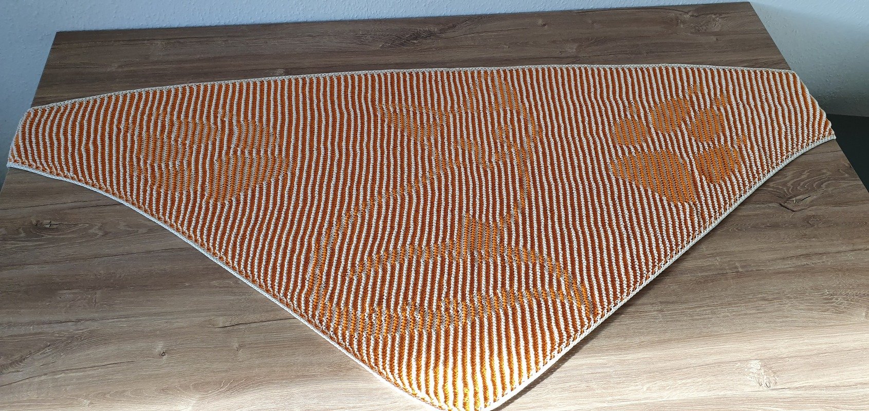 This pattern guides you step by step through creating a unique motif shawl, using the technique of shadow or illusion knitting. With this special method, the motif only becomes visible when viewed from the side – a striking effect with real wow-factor!
