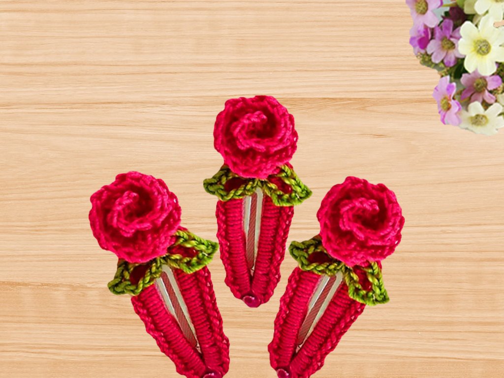 crochet hair clip pattern Consists of written description with details and photo tutorials.