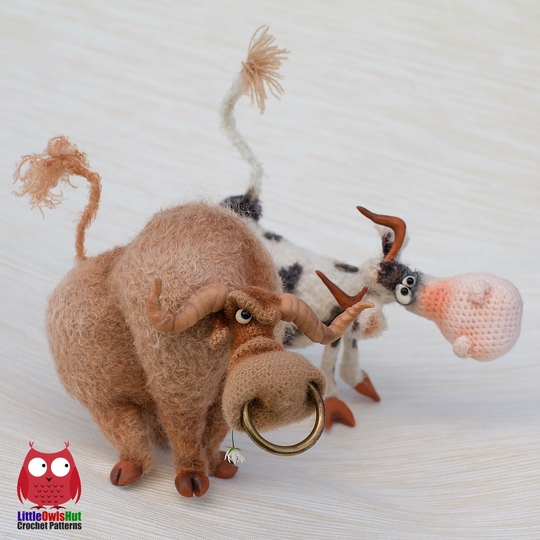 ✓ Additional yarn for the muzzle, horns, and hooves – I used two strands of “Lidia” PS Semenovskaya yarn (50% wool. 50% acrylic, 1613m / 100g) (10g) and one strand for the hooves (5g).
