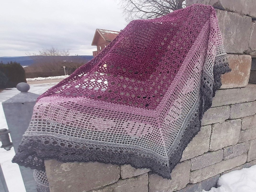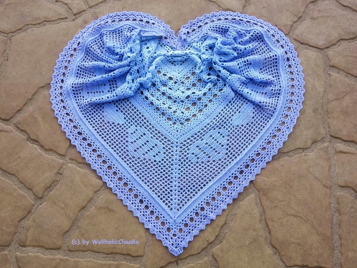 Tuch "Herz an Herz" ist ein Mix aus Filethäkeln und dem herkömmlichen häkeln, so kommt beim Nacharbeiten keine Langeweile auf. Man kann es selbstverständlich mit jeder beliebigen Nadel- und Garnstärke anfertigen, lediglich die Endgröße ändert sich dann.