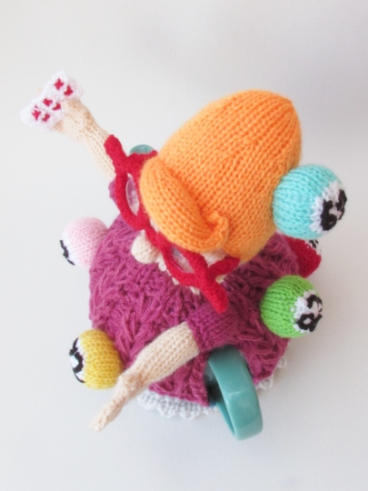 All around her are those colourful balls with numbers on, maybe you will remember some of the phrases for these numbers? The balls are great for stash busting, just choose brightly coloured yarn.