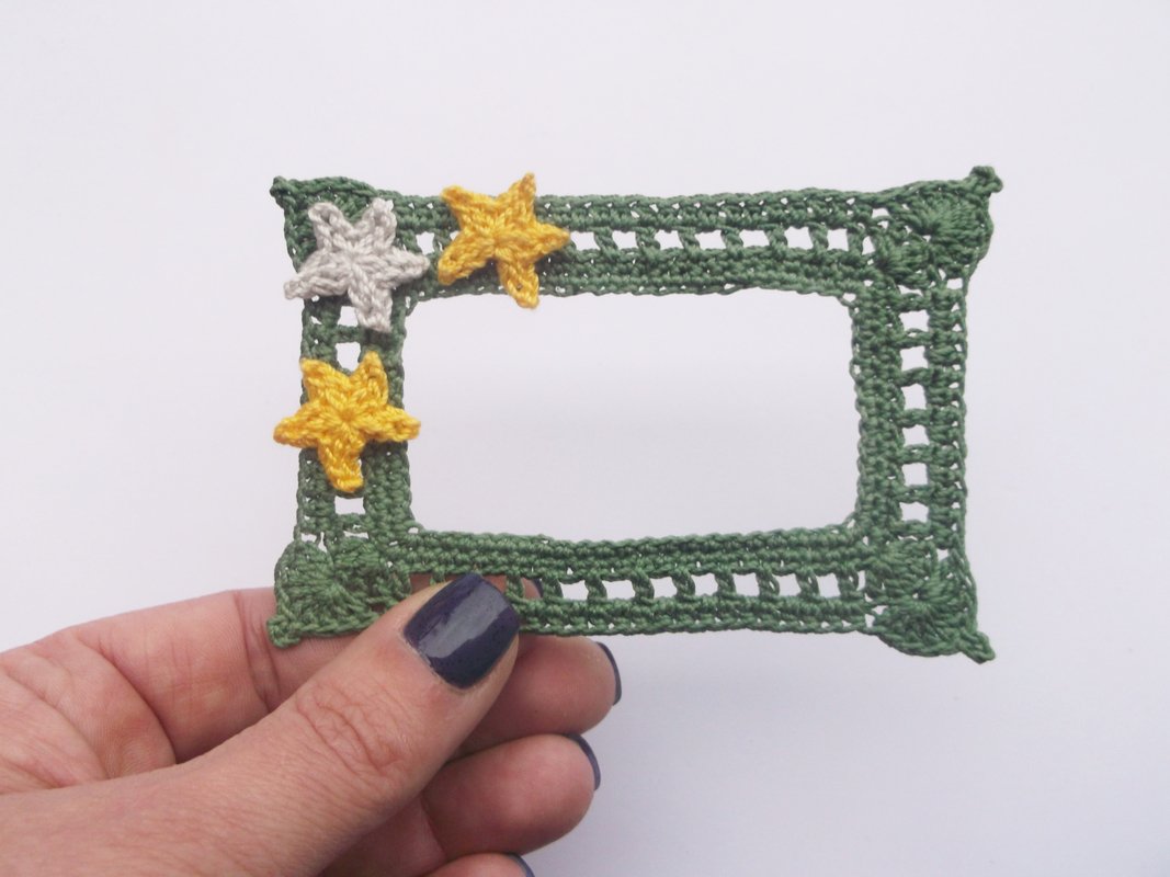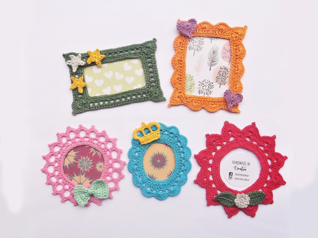 This booklet contains a collection of 5 crocheted picture frames. Quick to make, look great displayed together in a mix of shades.
