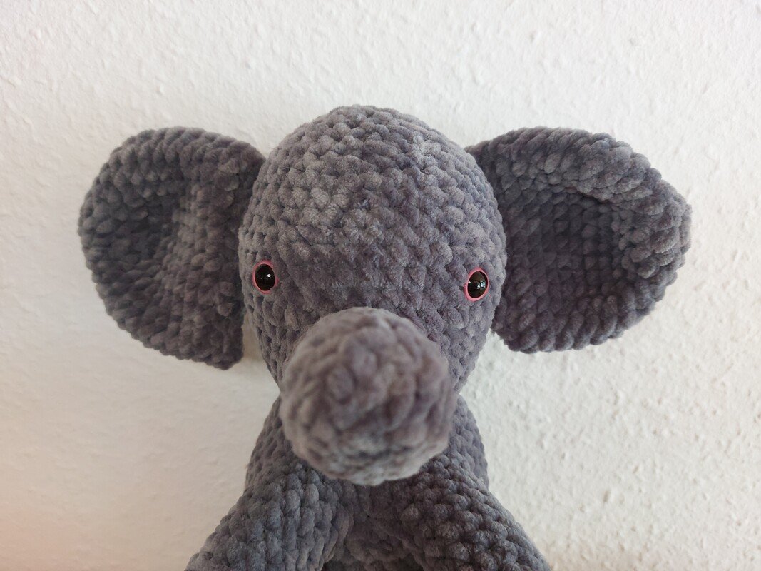 Crocheted with hook size 5.0, the elephant is about 27 cm tall.