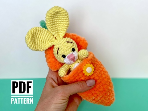 Crochet your own Easter bunny in carrot using this PDF pattern.