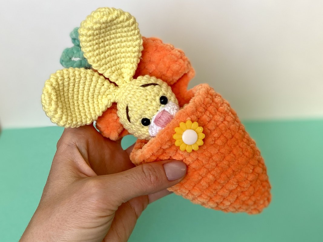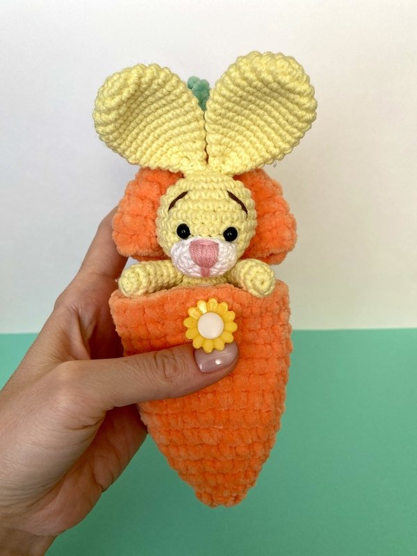 ● Hook US size B/2 (2.5 mm) for bunny and G/6 (4 mm) for carrot