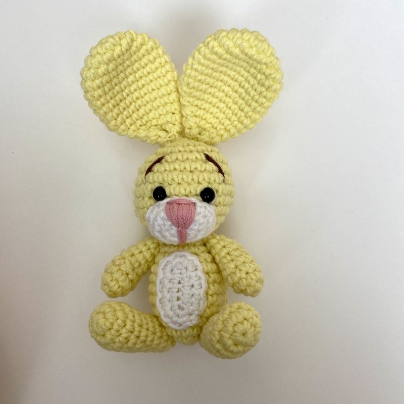 Height of the bunny 4 in/10 cm high without ears and 6 in/15 cm high with ears. using original yarn and hook B/2 (2.5 mm)