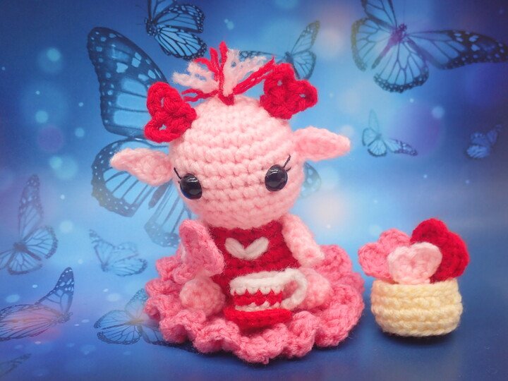 • Yarn: Any medium/worsted weight yarn of your choice Pink, Red, Dark Pink, White, & Yellow