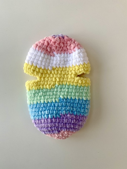 Crochet bunny in rainbow egg using this PDF crochet pattern.