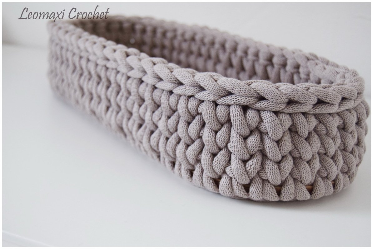 This long, narrow base was a customer order. When I held the finished base in my hands, I had to try it out immediately. So I picked out a few yarns and after a short time I had this beautiful basket in pastel colors ready.
