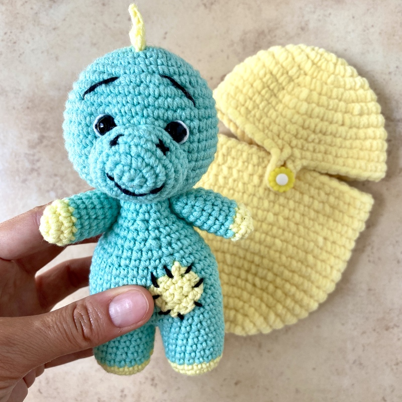 This PDF dinosaur pattern is written in English using US crochet terms.