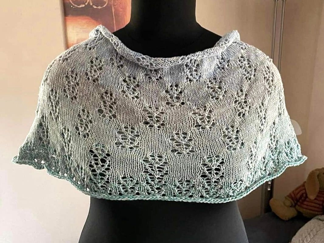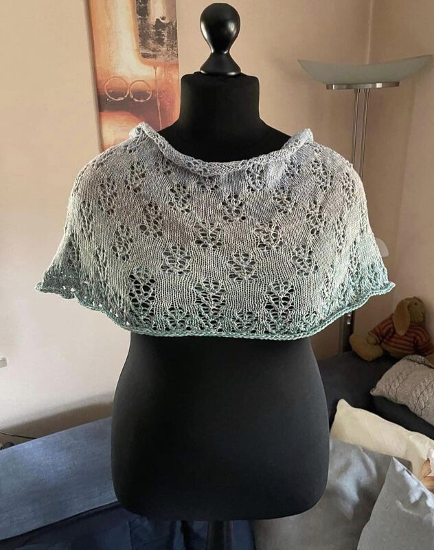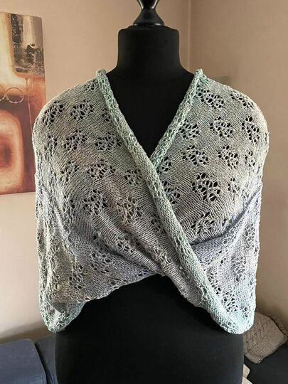 Schal oder Stola. Die Strickanleitung enthält eine zweite Anleitung für einen Schal oder Stola. Dazu wird das gleiche Muster gearbeitet.