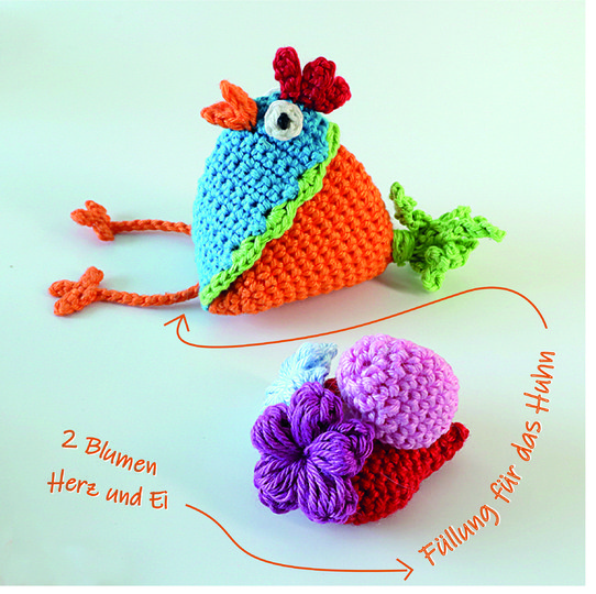 You can use the hen "Klipp-Klapp" as a table decoration, also as an edge stool or on the Easter bush it is super sweet. Equipped with a push button, you can also make a cute key bag or a bag pendant. Perfect to turn yarn residues into small eye-catchers.
