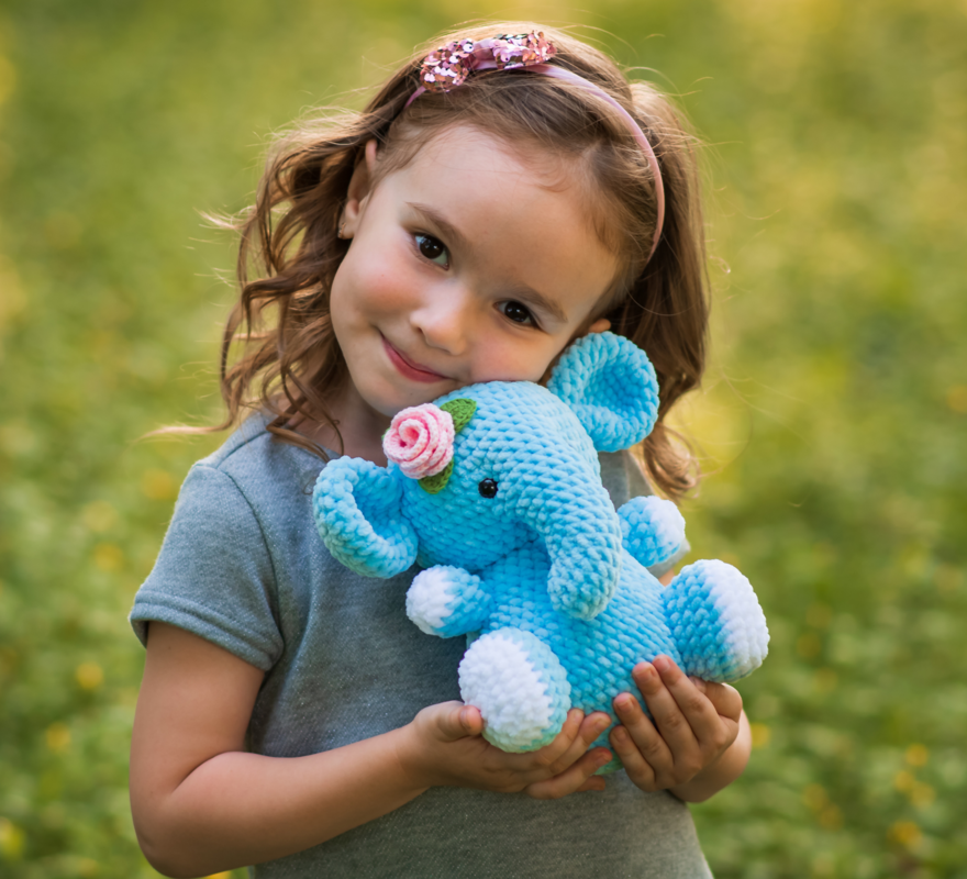 I use the HiMALAYA Dolphin baby Yarn for making the stuffed toys. Plush or velvet yarn of any other brand will also be perfect, but then choose an appropriate size of a crochet hook.