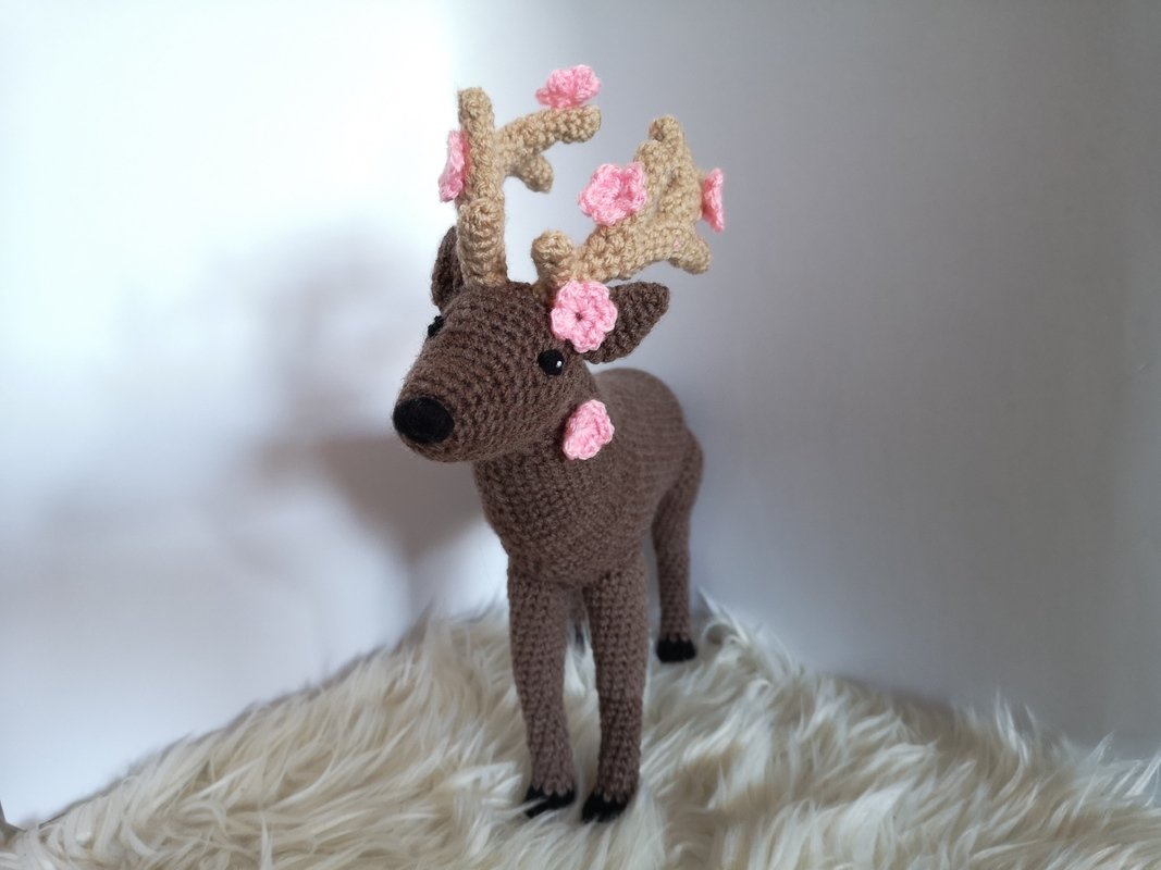 This realistic-looking, crocheted stag is a great decorative object and can be decorated to suit your own home decor: e.g. with small flowers on the antlers. Instructions for simple, small crochet flowers are also included in the instructions.