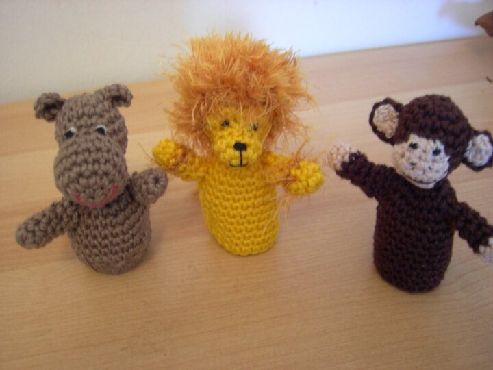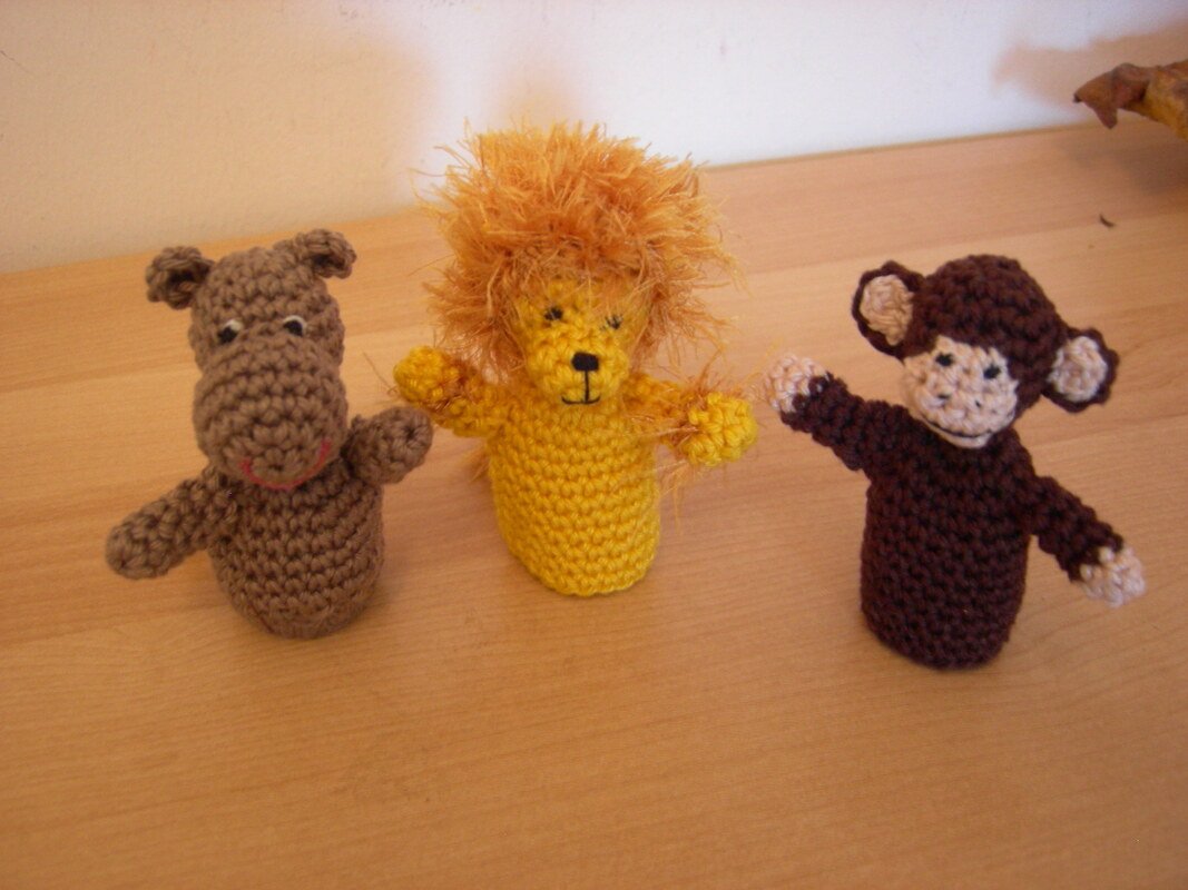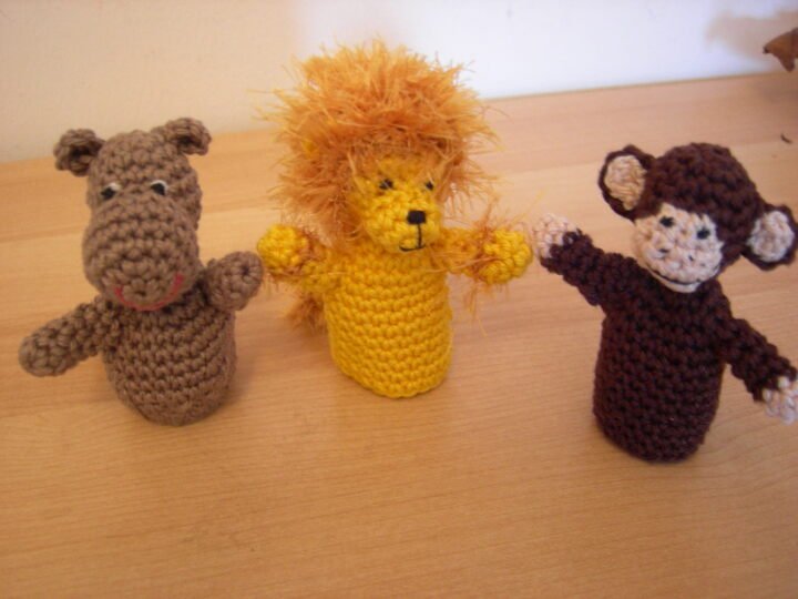 Die Fingerpuppen können aus Wollresten gehäkelt werden.