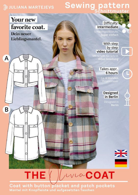 The pattern as ebook for your new favorite coat "The Olivia Coat". With free video instructions on our YouTube channel JULIANA MARTEJEVS - The DIY fashion label or our website (see profile).