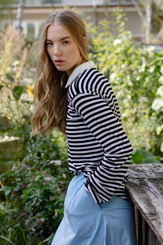 The polo shirt is reinterpreted in a loose oversized style. For a long time it was considered a stuffy piece for snobs, but if you put on the right cut and the right fabrics, you are totally in trend. Your polo shirt should meet these three criteria: it must be loose-fitting, have long sleeves and a contrasting collar. Check, check and check we would say, because The Pippa Polo fulfills all these points. So get to the sewing machine and prove how cool polo shirts can look.