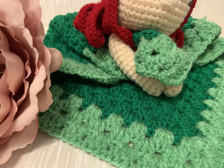 -The size of the finished lovey is 38cm (~15inch) long, but you may have it different. Depends on the yarn and hook size.