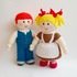 The boy’s clothes and the girl’s apron, cuffs and collar are worked on 2-mm knitting needles