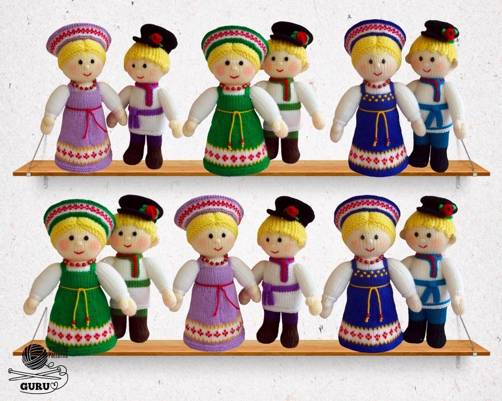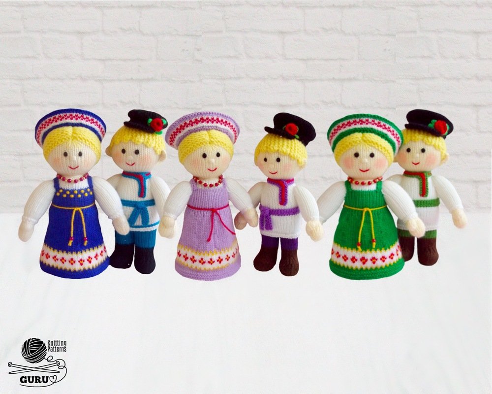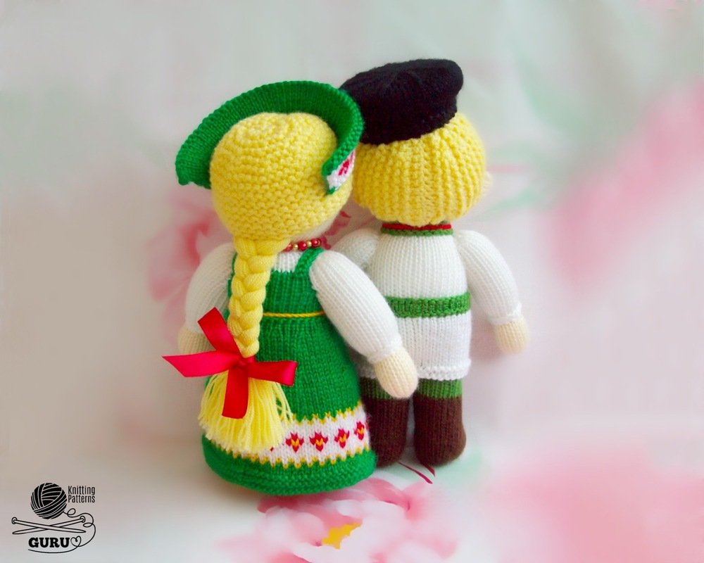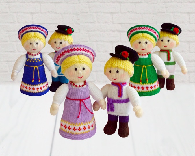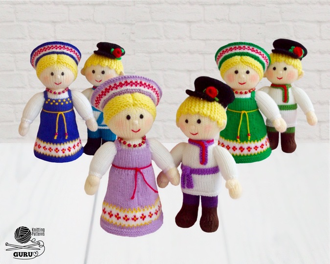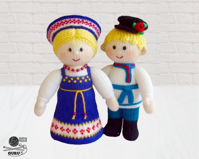 Note: the main parts of the dolls are made on 2.5-mm knitting needles. The hair is made on 3-mm knitting needles.