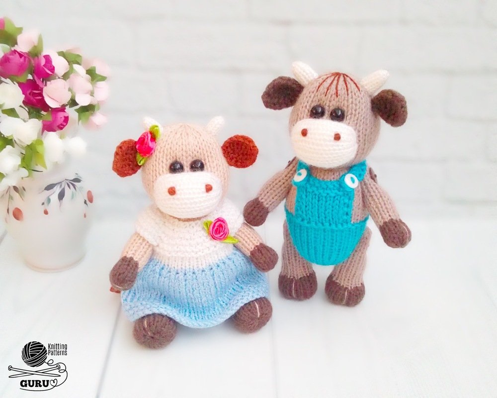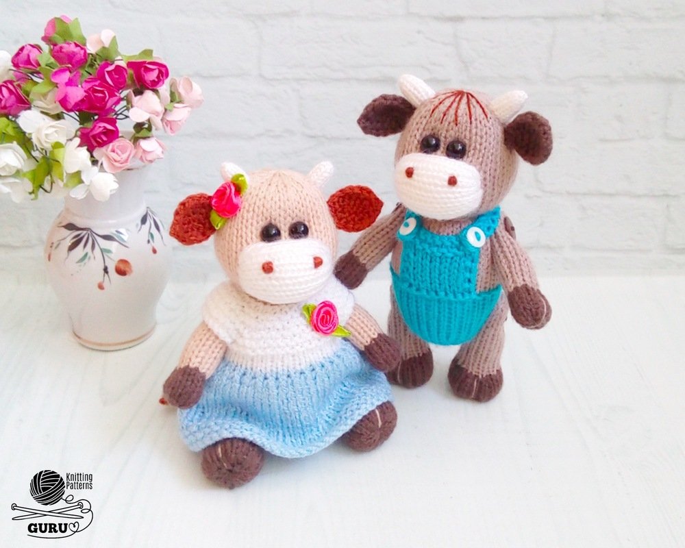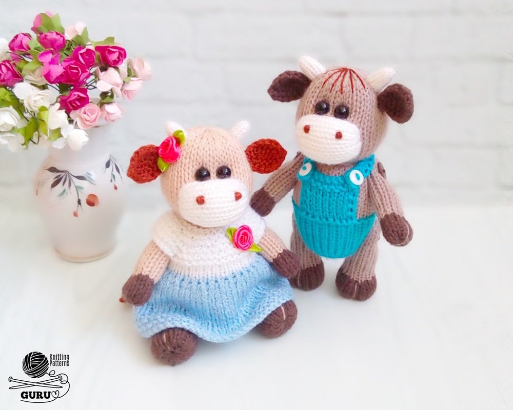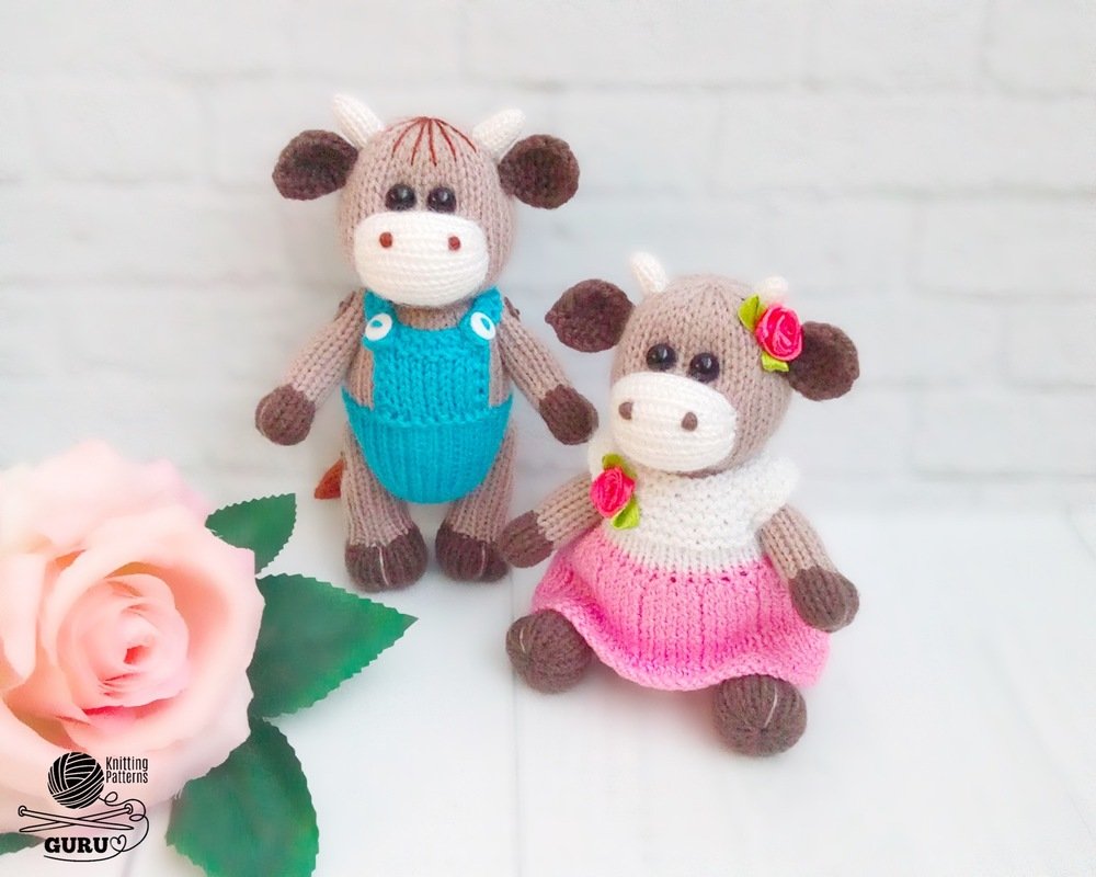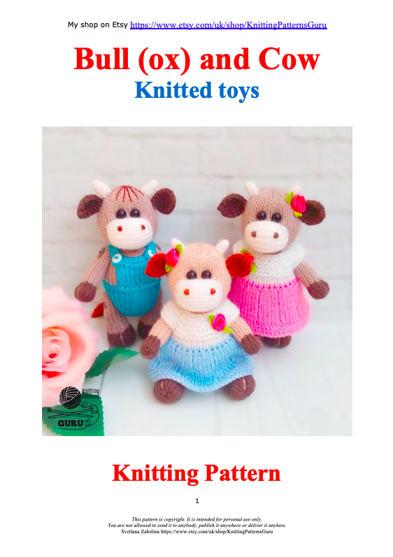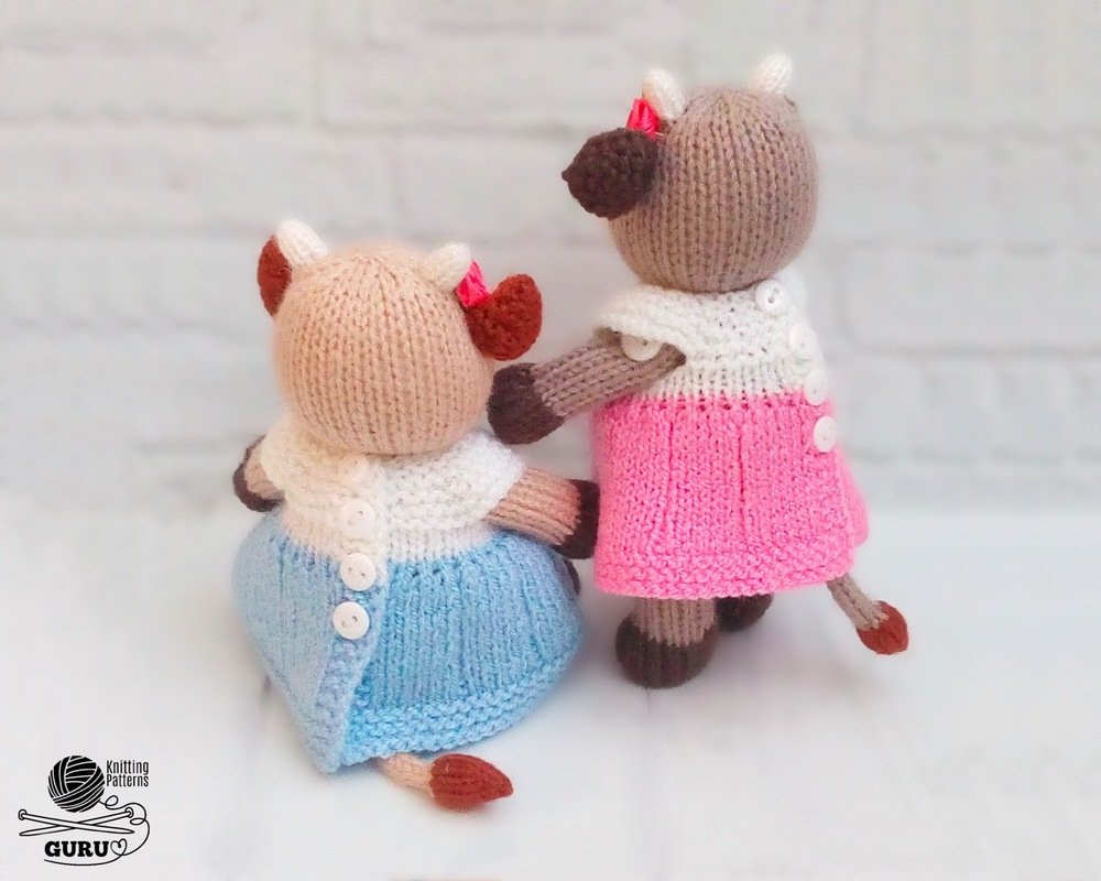 The dress of the cow is made of YarnArt Super Perle (fingering; 100% acrylic; 400 m per a 100 g ball).