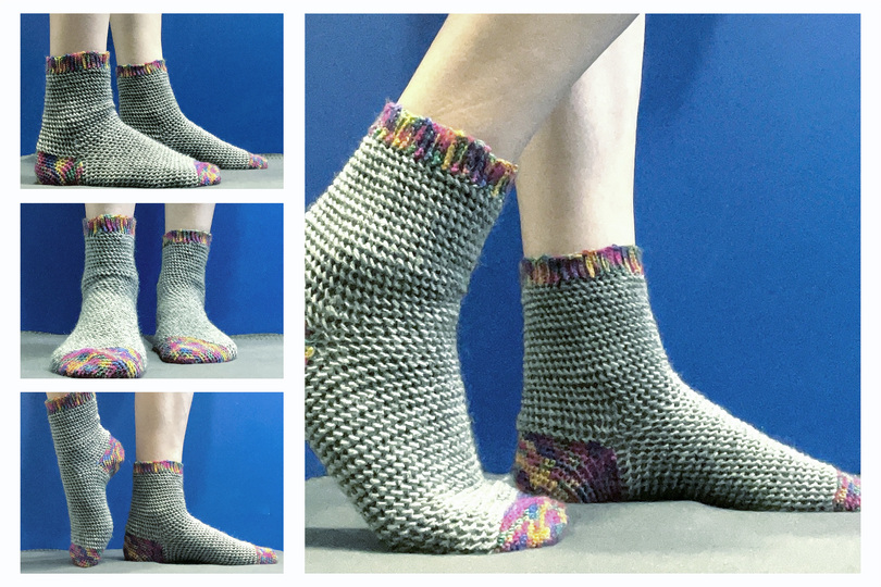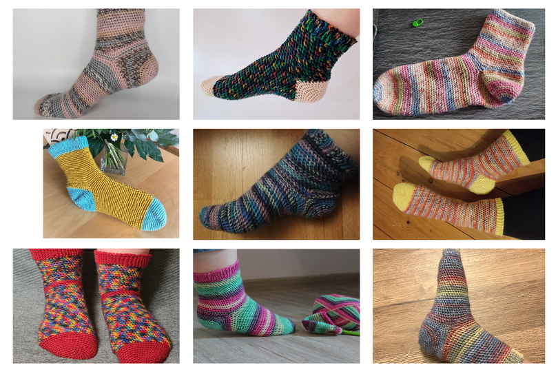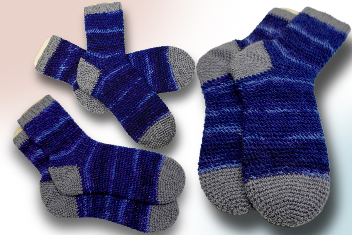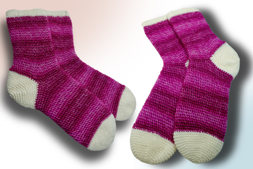 the cuff and the heel are added later. You should have a little experience to adjust the sock to your desired size, this can vary due to the tight crochet or the wrong needle size.