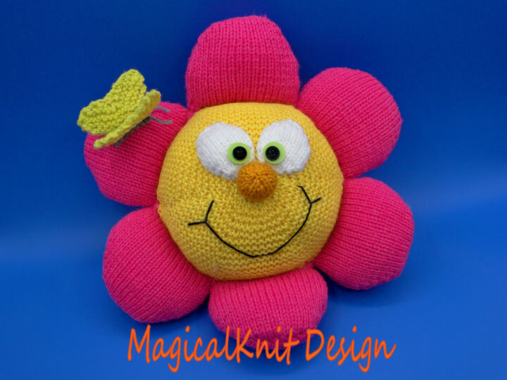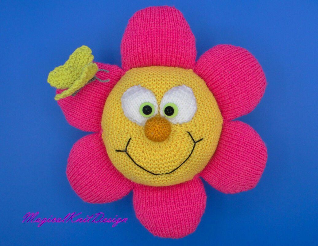 This is Flo the flower knitted flat with straight Knitting needles, easy to follow pattern, with row by row written instructions and photo-tutorial.