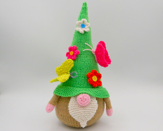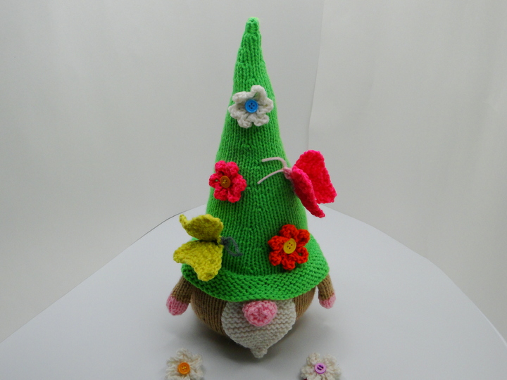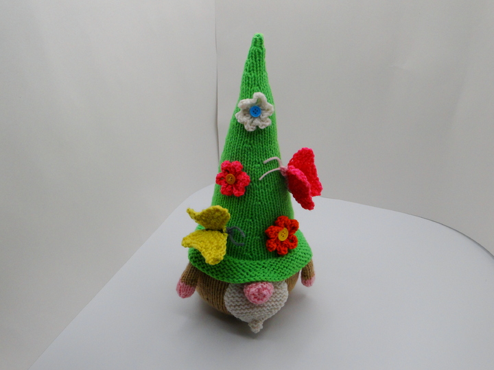 This is Hans the Spring gnome, knitted flat with straight Knitting needles, easy to follow pattern, with row by row written instructions and photo-tutorial.