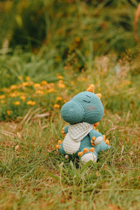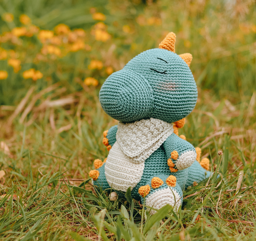 With this pattern, the dinosaur Diego can be crocheted. Using the specified yarn, he will be large enough to insert a music box.