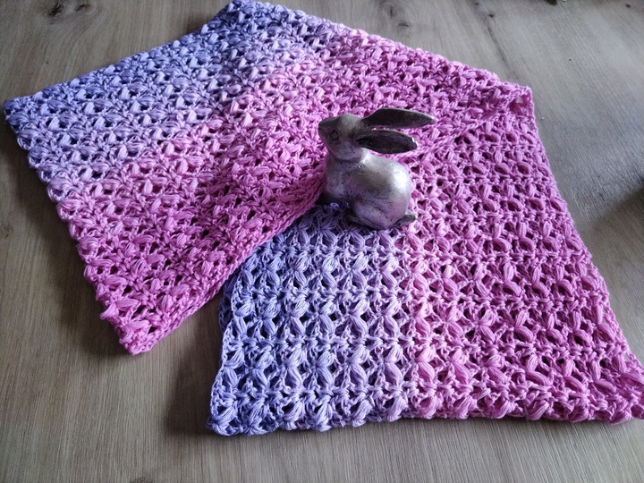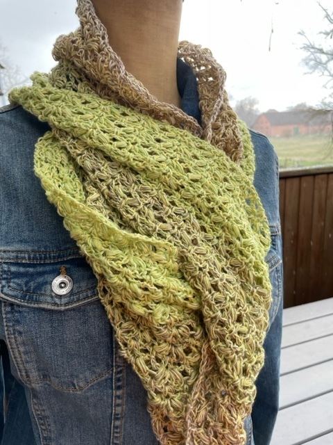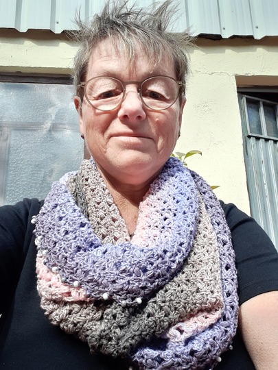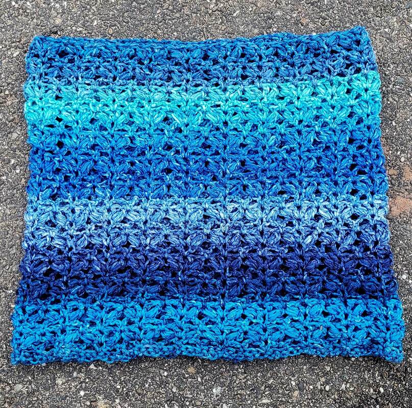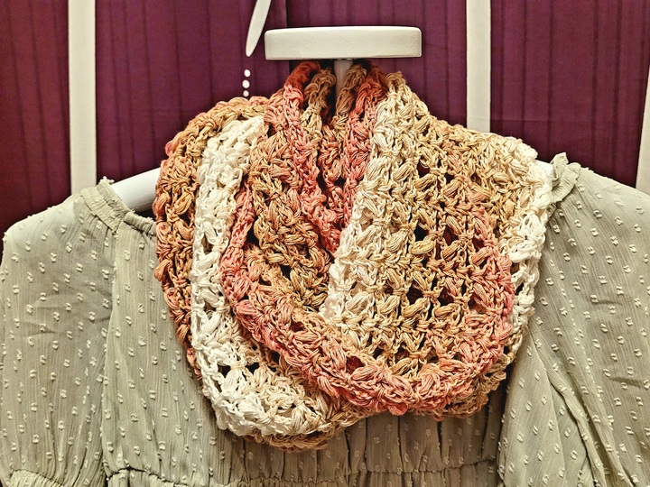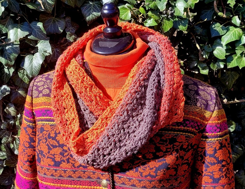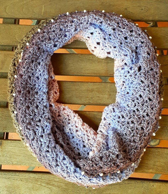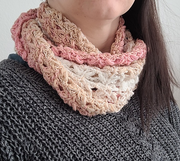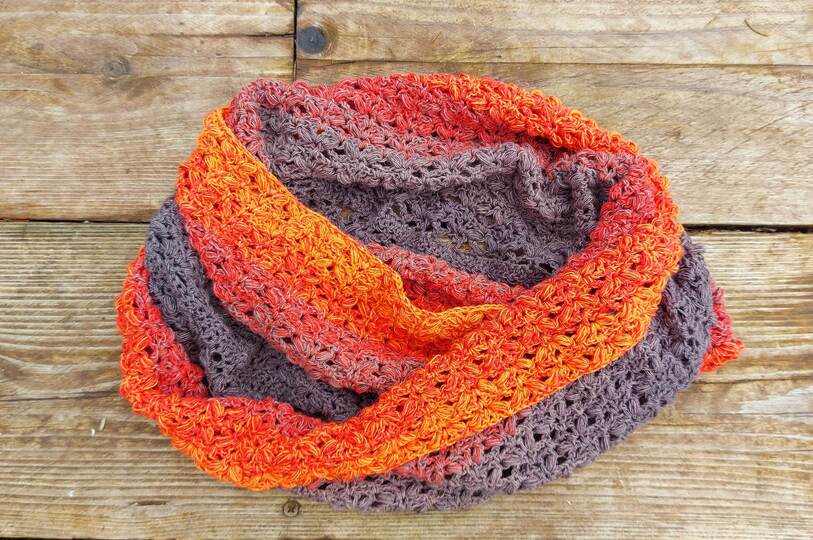 The cozy pattern is simple (just two different rows) yet the front and back look the same, which works best for a loop.