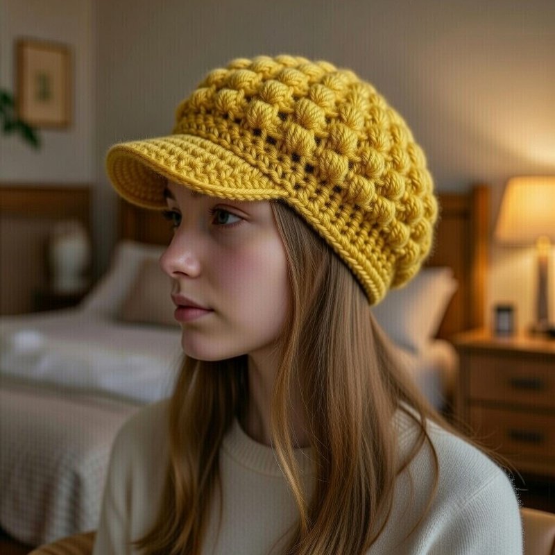 The bonnet-style hat is perfect for chilly days, thoughtful handmade gifts, or stylish market makes.