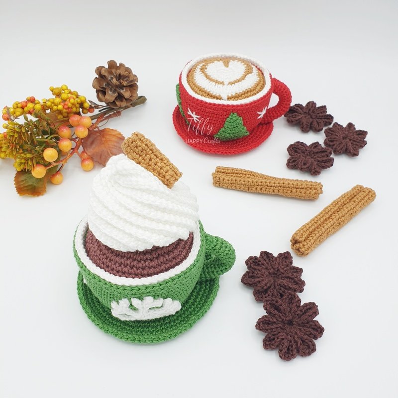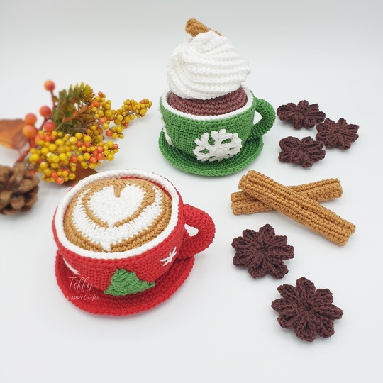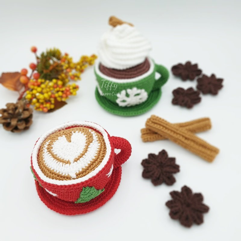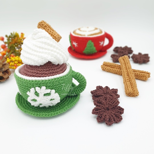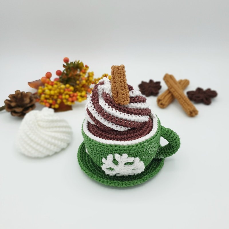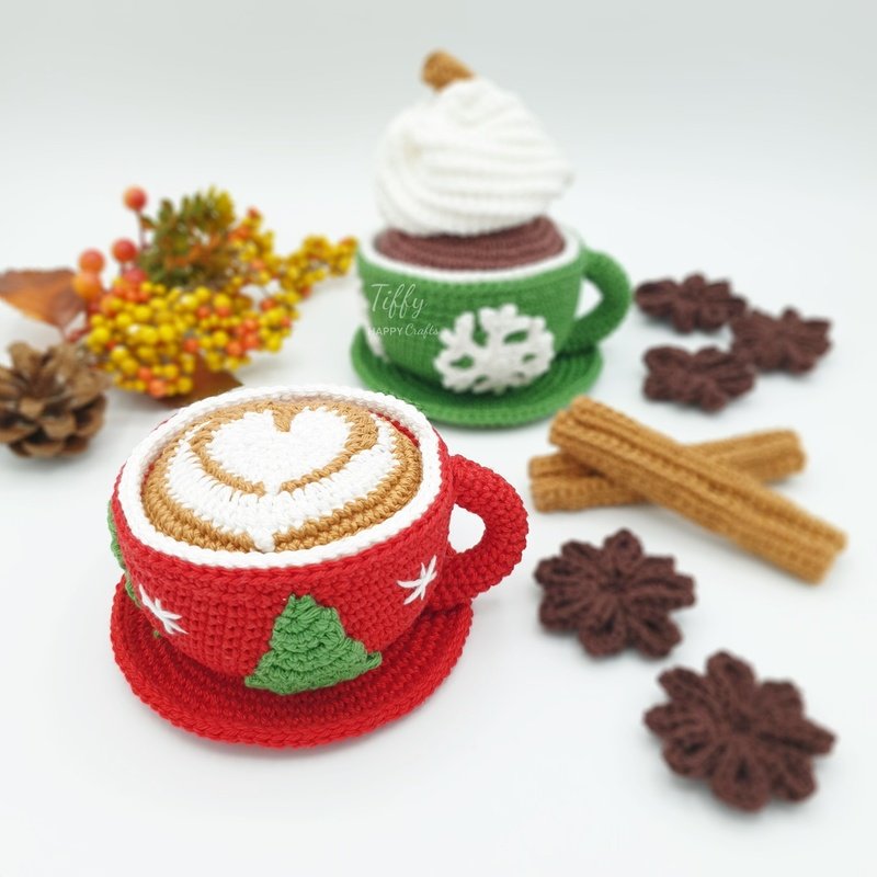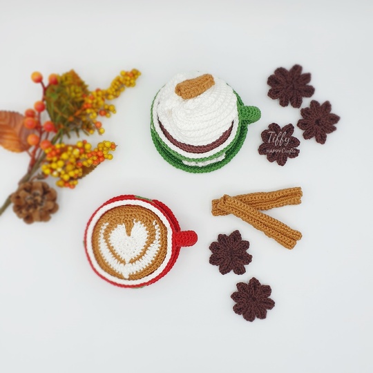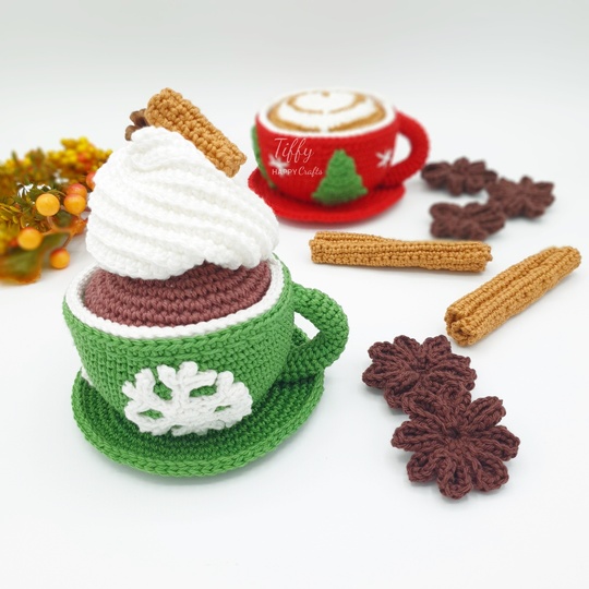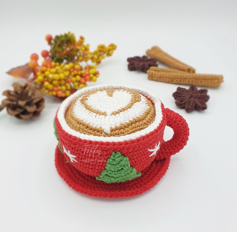 Here is an easy-to-follow Crochet Pattern for the COMBO PACK Christmas Cappuccino Latte Art Mug, Christmas Hot CaCoa Mug, Star Anise and Cinnamon ️