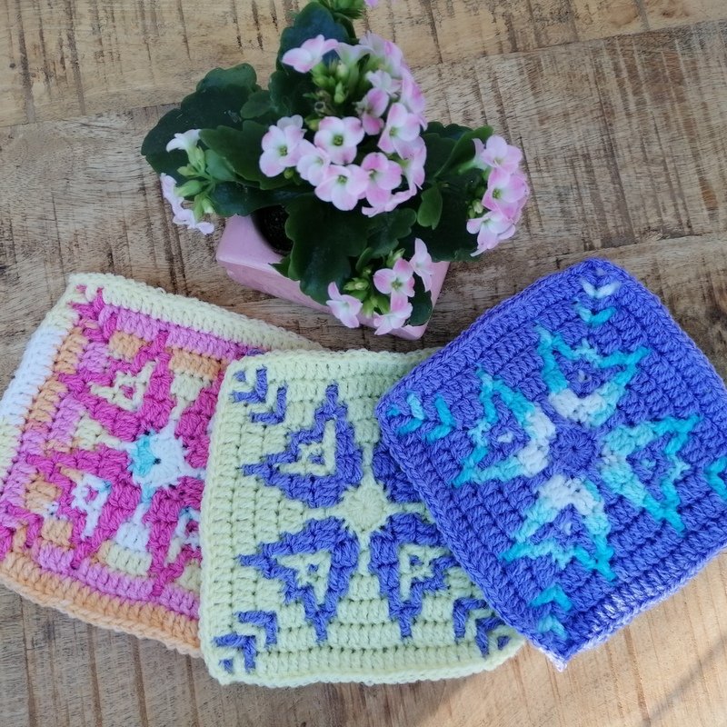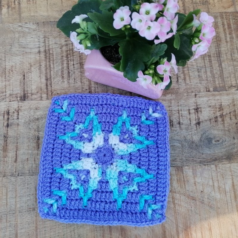 Anleitung für ein Quadrat mit 13 Runden in Mosaikhäkeltechnik