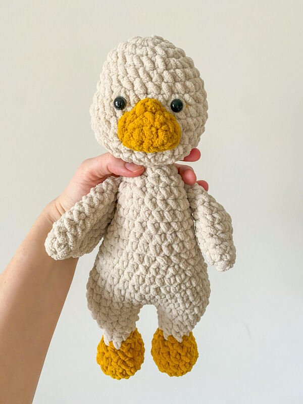 Crochet the perfect duck to cuddle. This soft amigurumi snuggle animal named Achim can't wait to be cuddled. This baby duck snuggle animal crochet tutorial includes two eye options: Safety eyes and embroidered sleepy eyes. Achim is stuffed medium-firm as usual for regular cuddly animals.