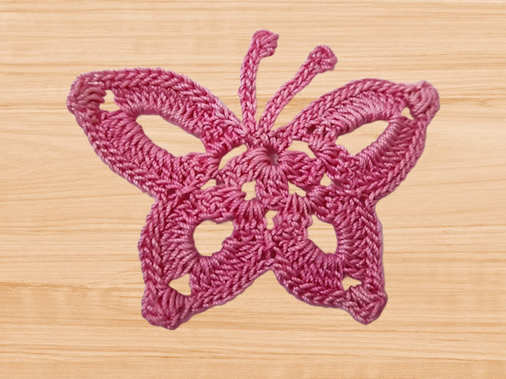 A crochet butterfly pattern includes pictures for every step, gauge, stitch count and extra notes to help explain.